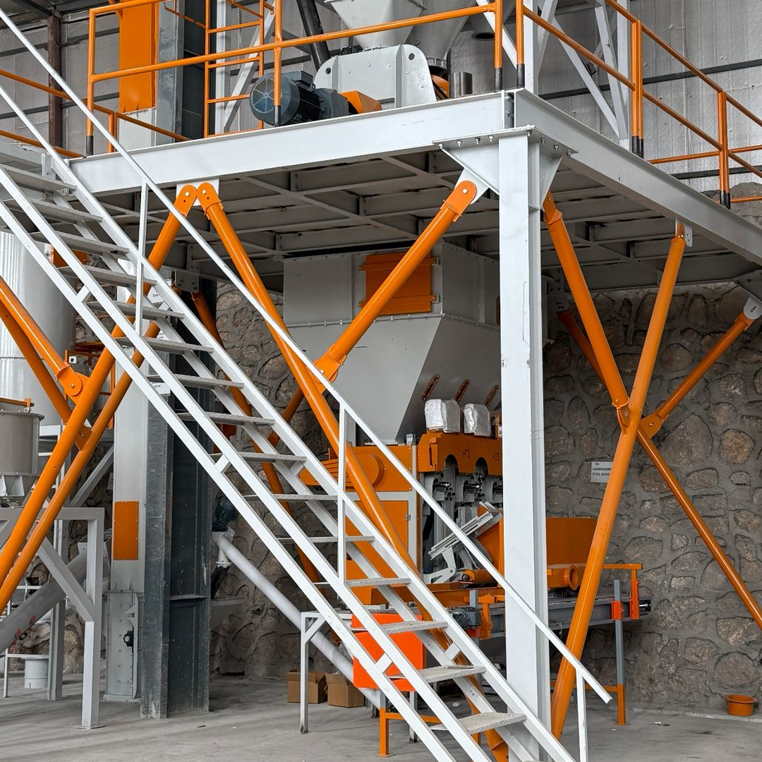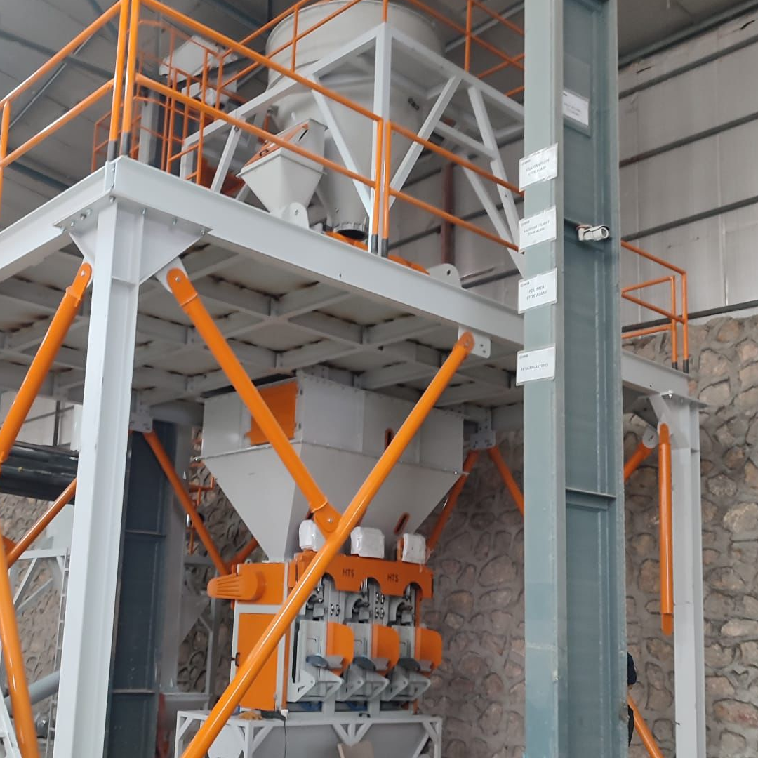 8 Saat 150 ton kapasiteli silo, tartım bunkeri, elevatöri mikser ve paketleme makinelerini ...